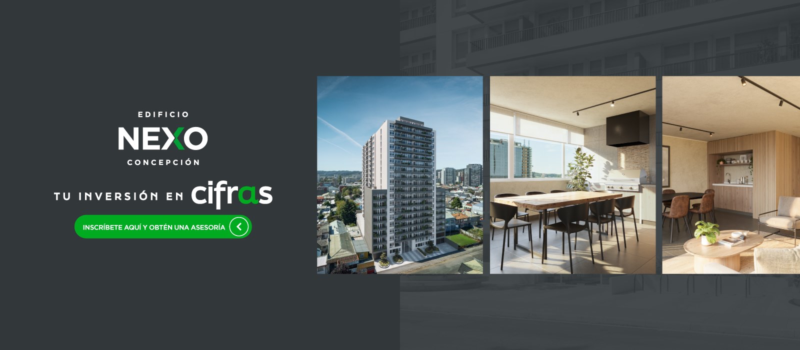 Departamentos de 1 y 2 dormitorios. Ubicado en el corazón de Concepción, Edificio Nexo te mantiene vinculado a la energía de la ciudad. Cerca de comercios, servicios y cultura, pero en un entorno más sereno, donde el ritmo se vuelve más calmado. Nexo simboliza ese equilibrio único: estar en el centro de todo, sin renunciar a la tranquilidad de un lugar residencial.